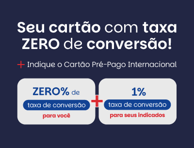 Transações que necessitarem da conversão entre moedas disponíveis no cartão pré-pago internacional serão calculadas usando a taxa de câmbio diária determinada pela Mastercard somada a uma taxa de conversão. Consulte a seção de tarifas e limites em nossa Central de Ajuda.